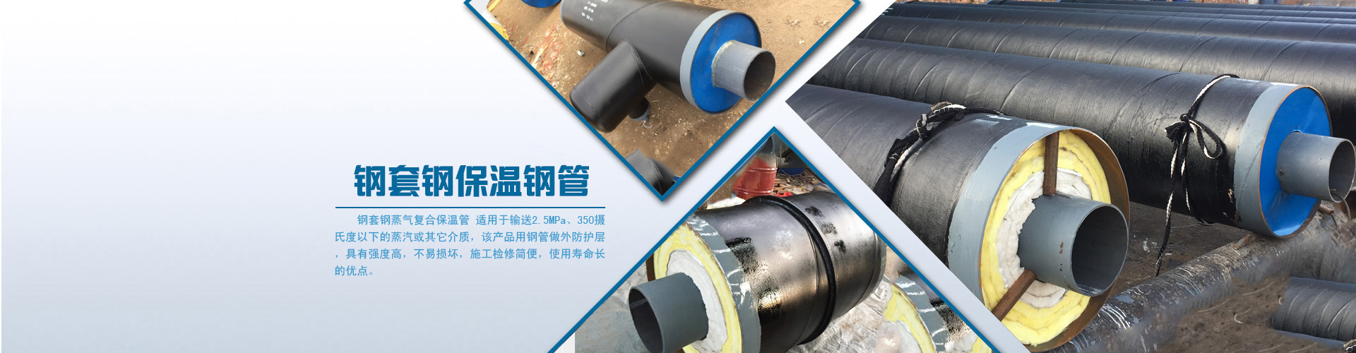 鋼套鋼直埋蒸汽保溫管又叫做管中管,鋼套管,鋼套鋼保溫管道由輸送介質的工作鋼管、玻璃棉保溫隔熱層、鋁箔反射層、不銹鋼緊固帶、滑動導向支架、空氣保溫層、外護鋼管、外防腐層 -